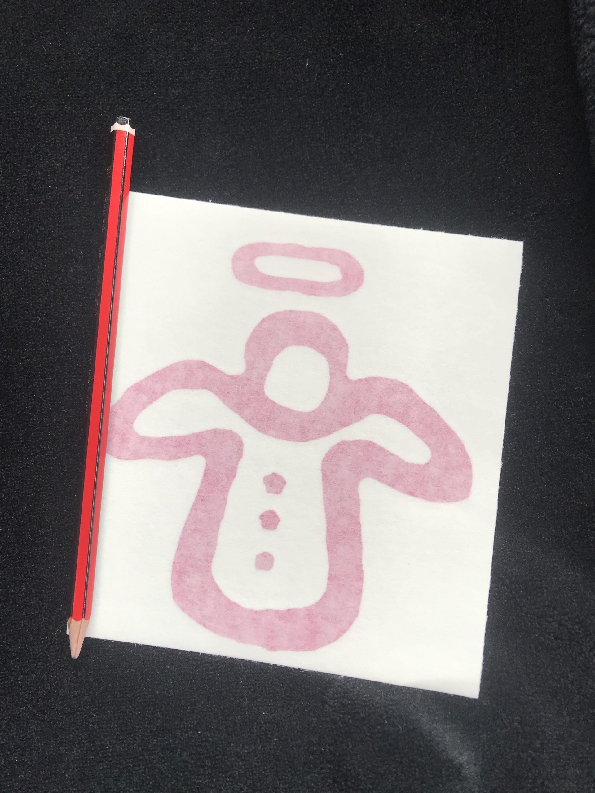 Just peel the glossy card gently from the back, leaving the pink angel vinyl stuck to the sticky paper.